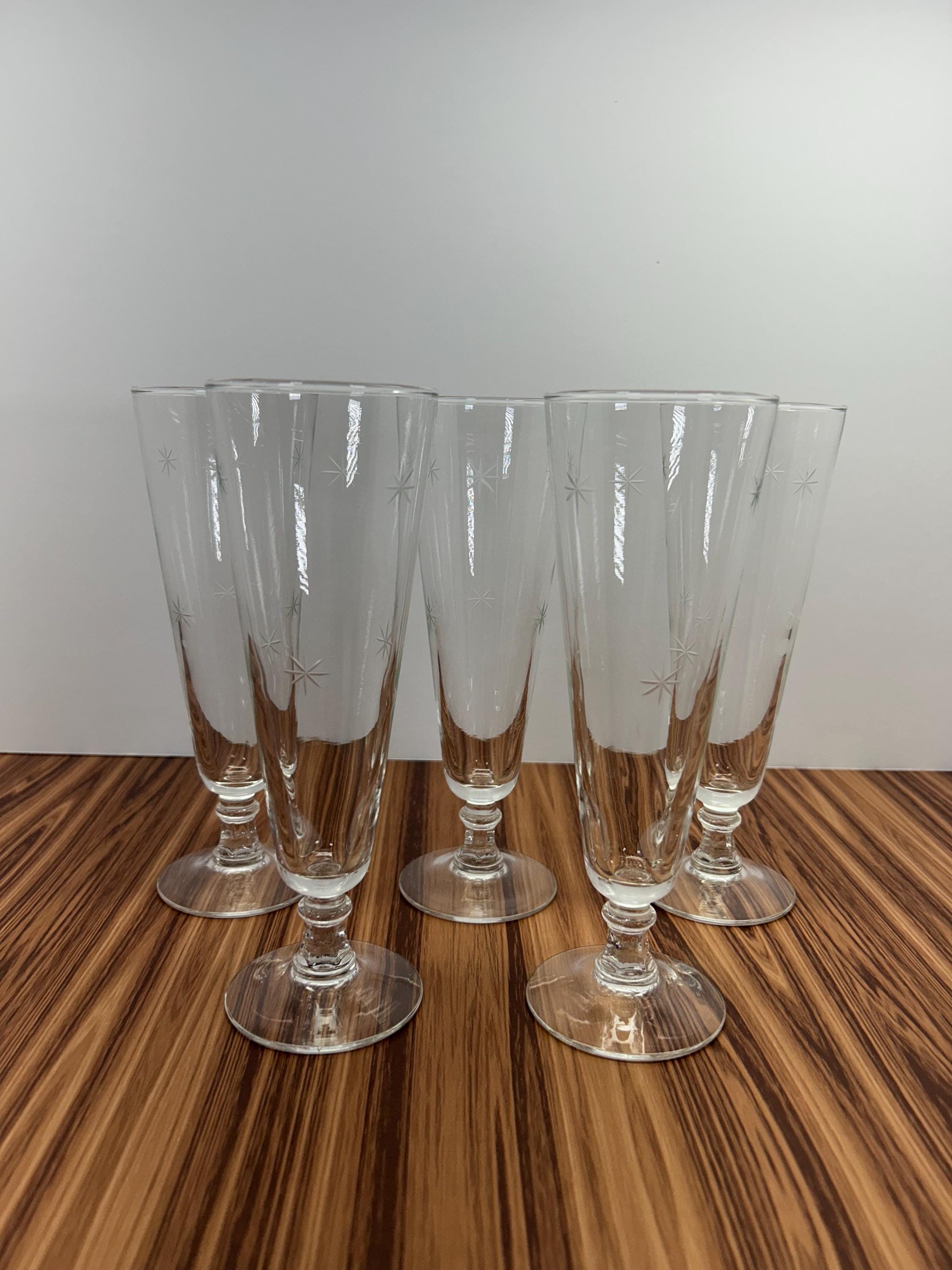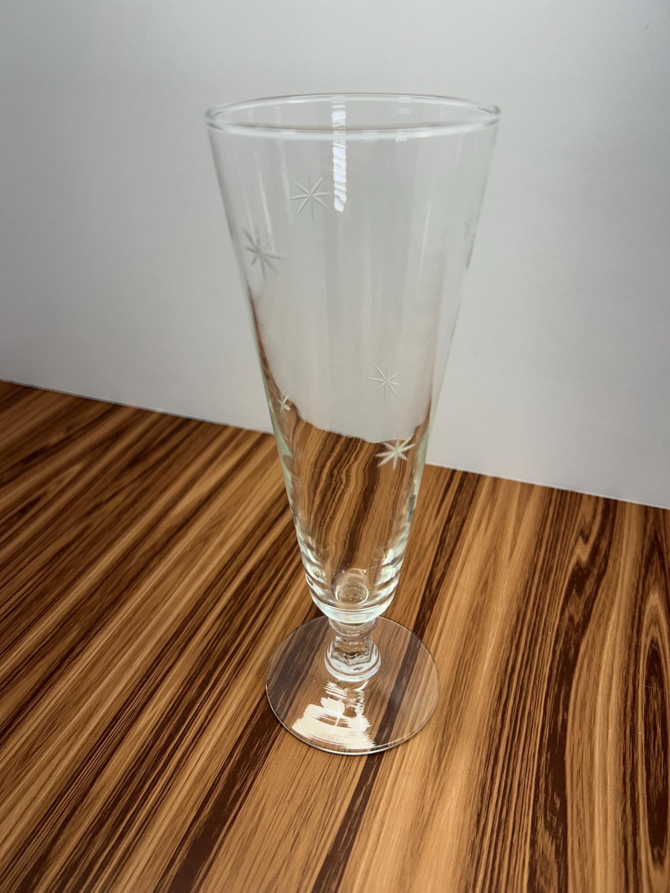 Perfect for serving pilsners, cocktails, or even as collectible display pieces, these glasses capture the playful elegance of vintage Mid-Century Modern design. A true find for collectors, retro enthusiasts, or anyone looking to elevate their glassware with style and history.