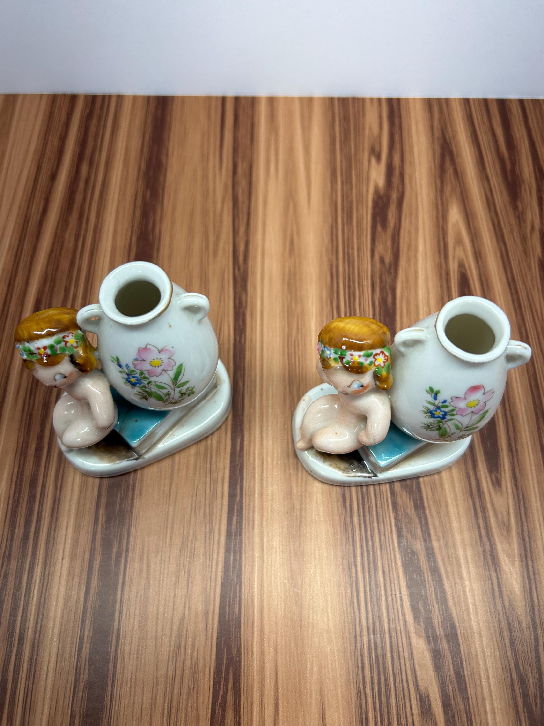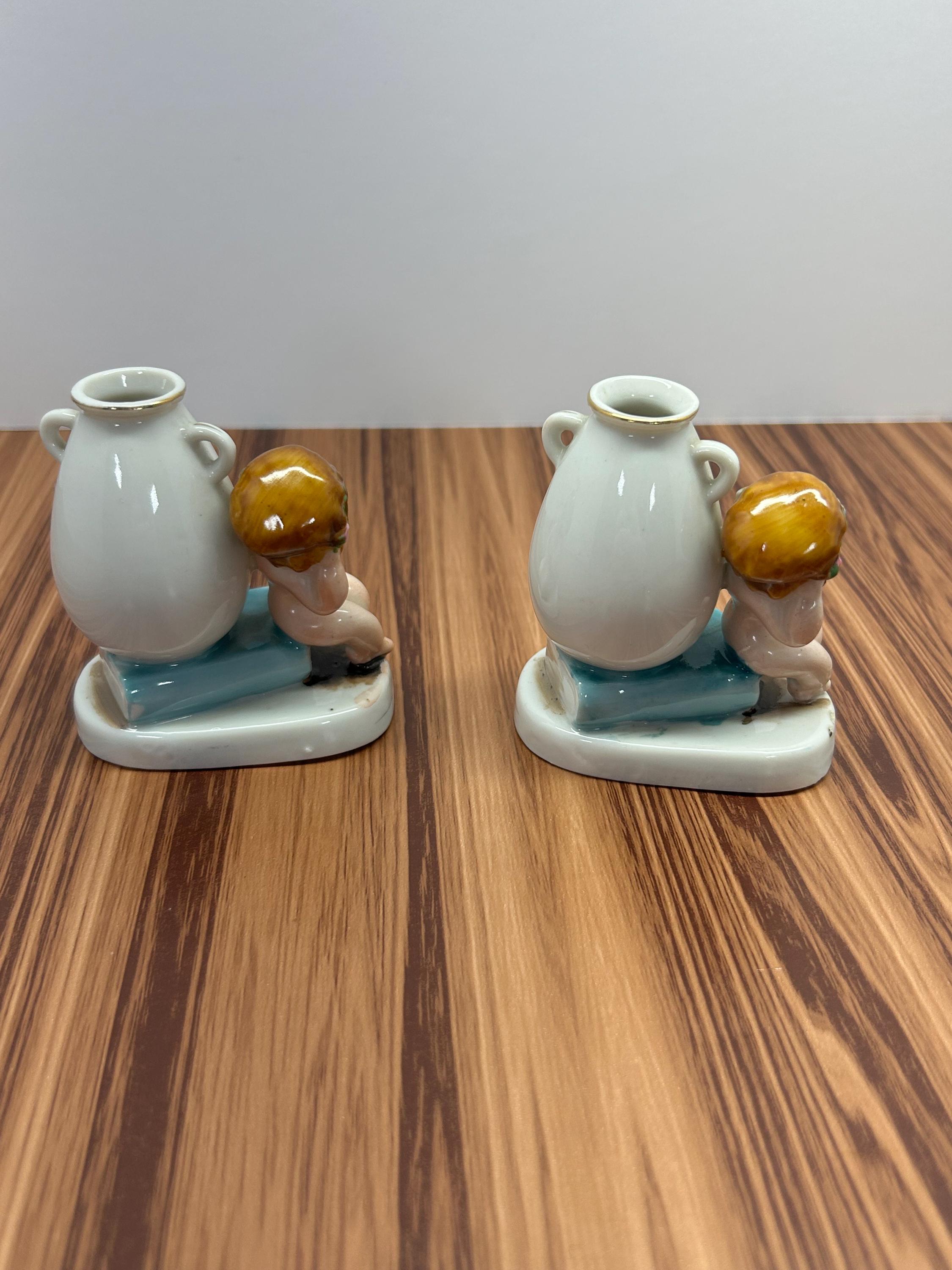 Vintage Bathing Beauty figurine with integrated bud vase, marked Mocoo – Made in Occupied Japan. Dating to the post-WWII era (circa 1945–1952), this charming piece features classic mid-century styling and delicate detailing. A lovely collectible for Occupied Japan enthusiasts or vintage décor displays.