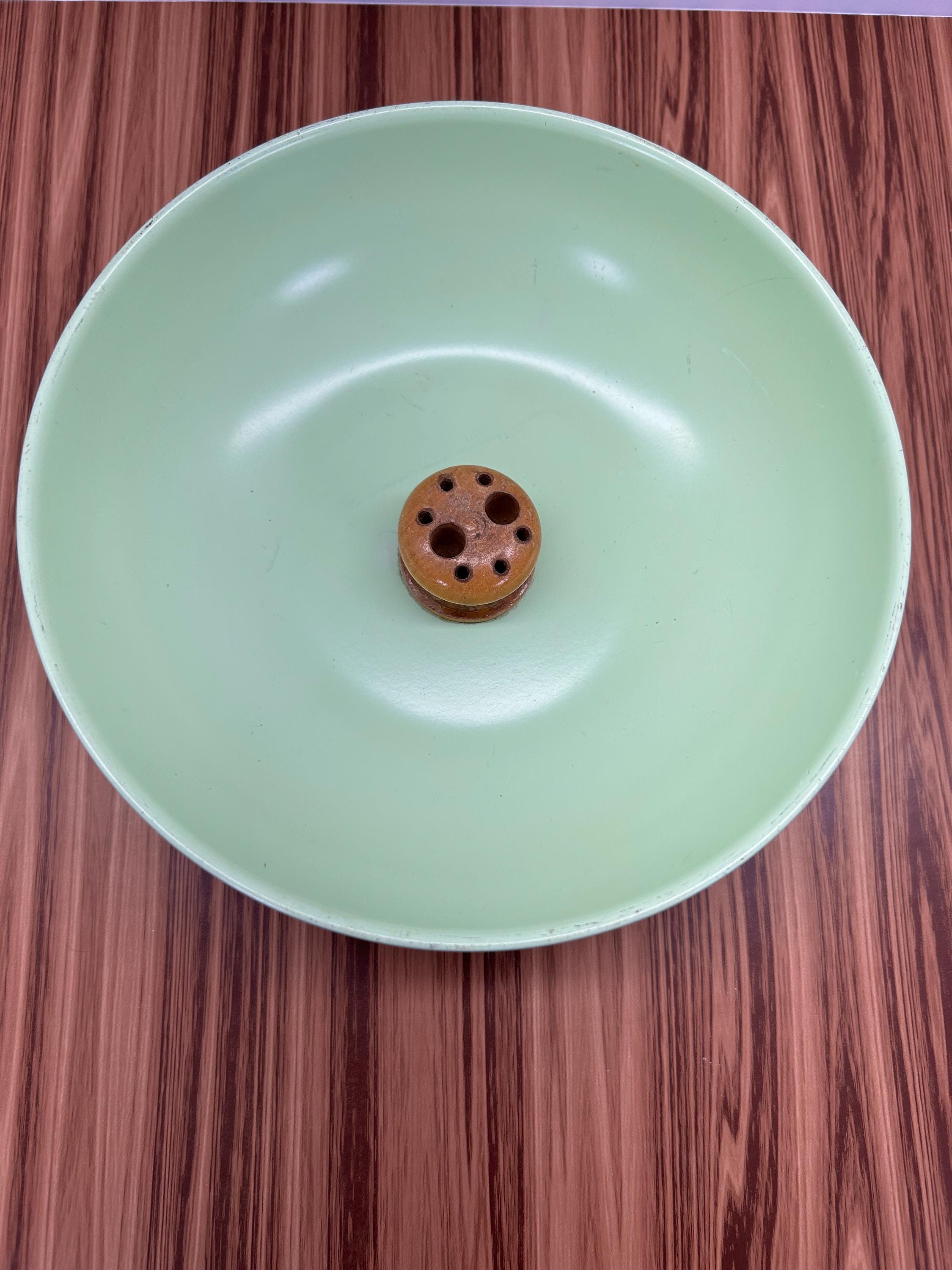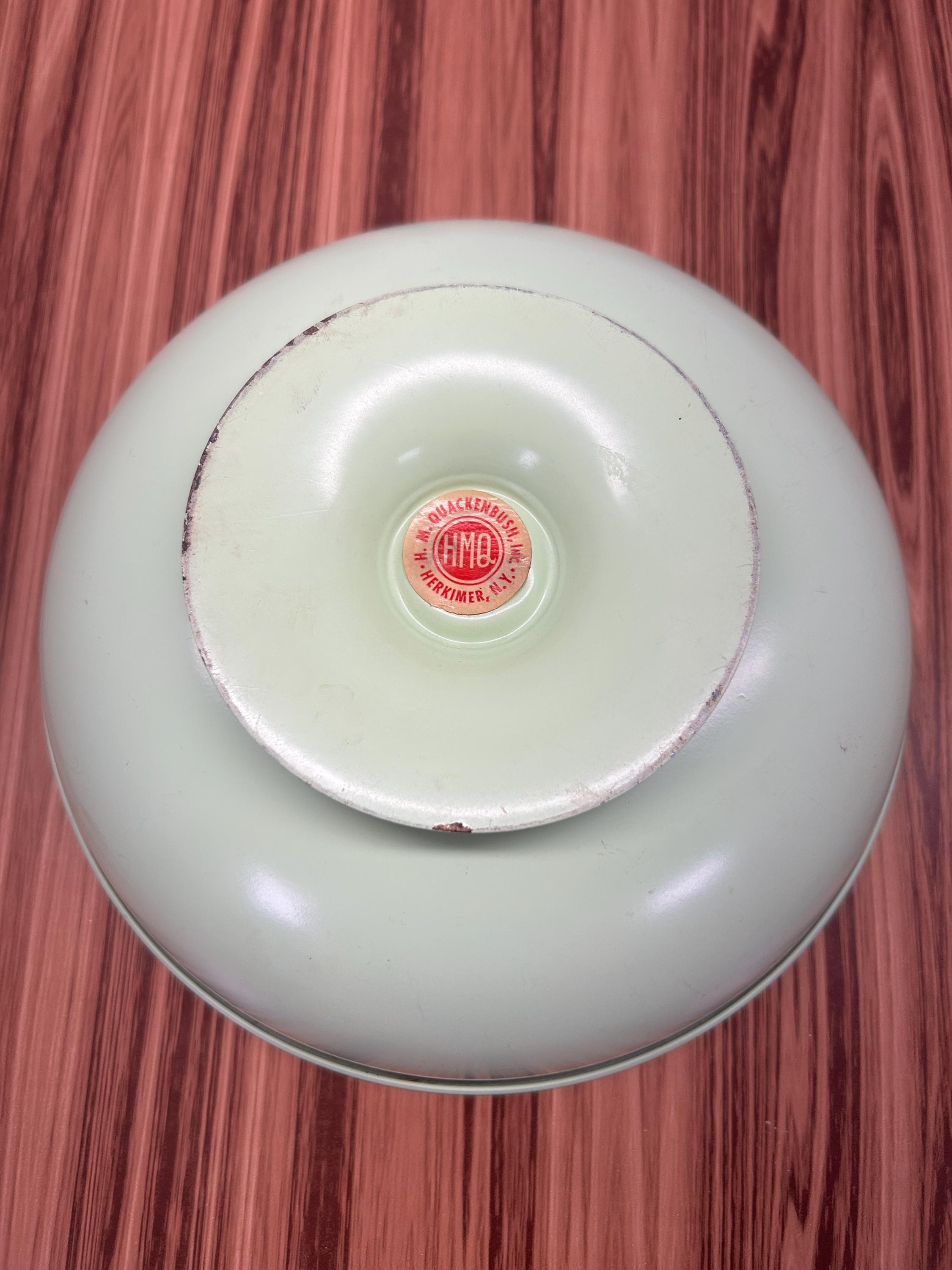 A charming and functional vintage nutcracker bowl by H.M. Quackenbush Inc., crafted from sturdy metal with a warm wooden handle. Designed for cracking nuts and catching the shells, this classic piece blends rustic utility with timeless farmhouse appeal.