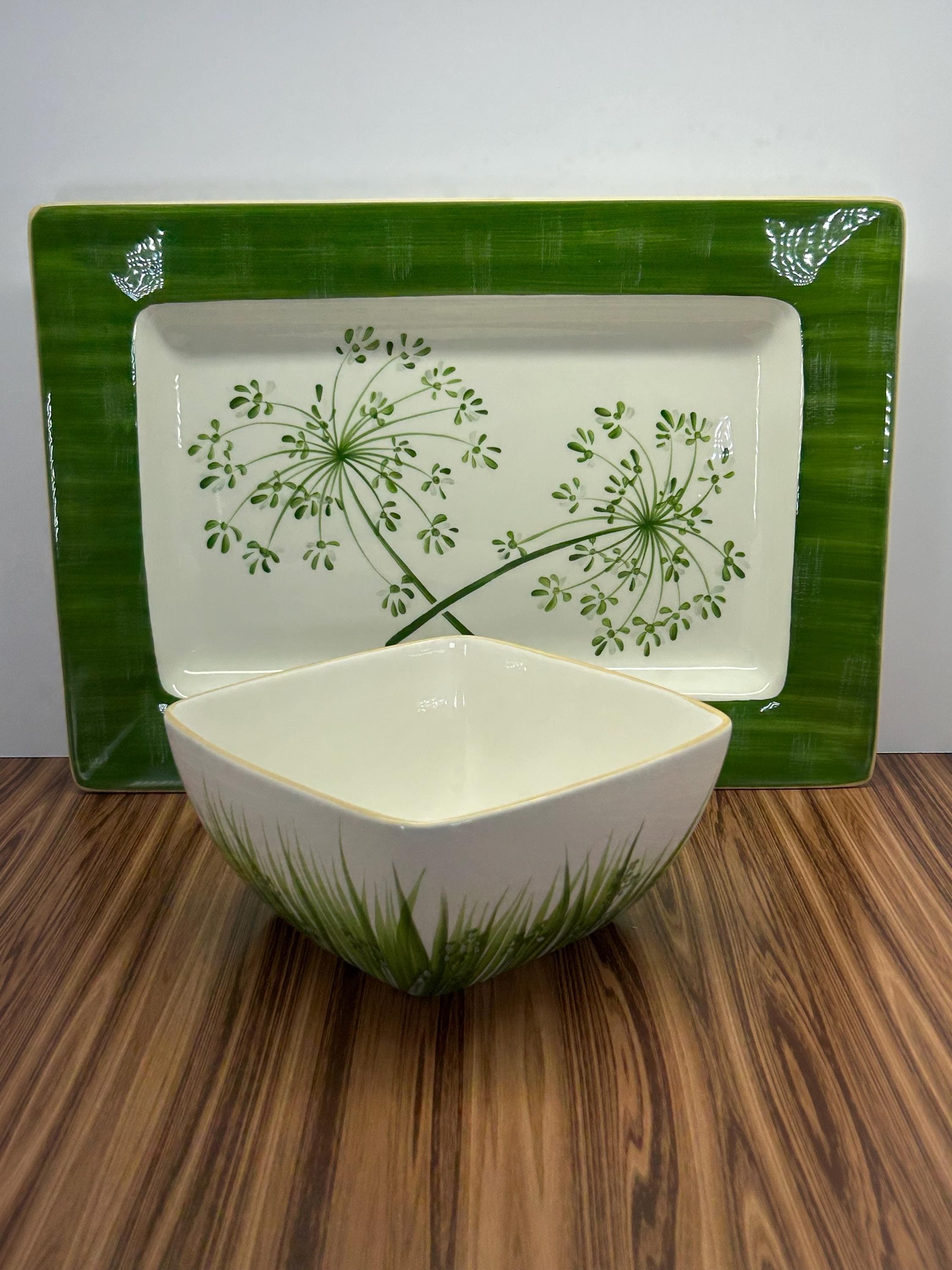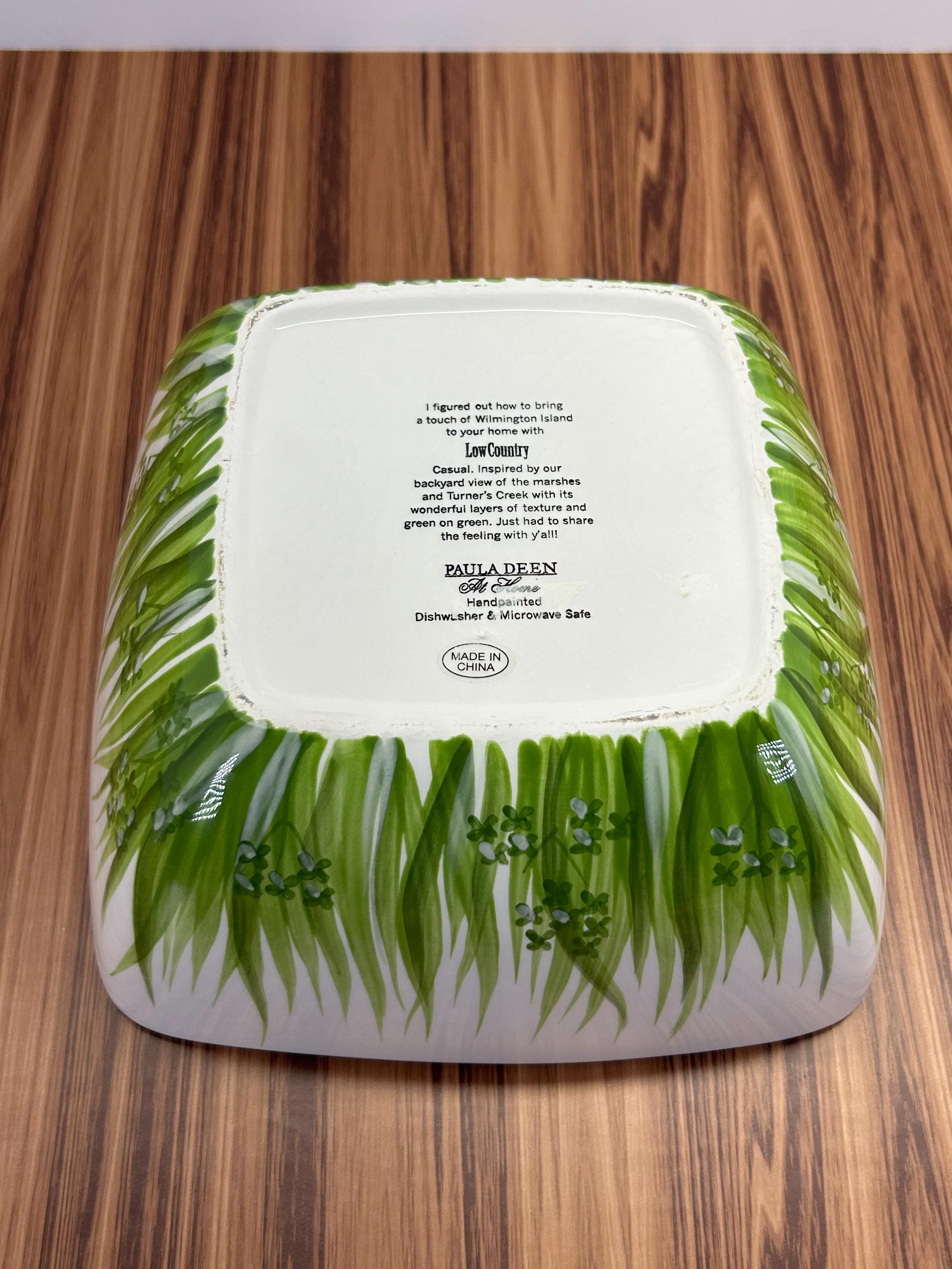 Beautiful Paula Deen Low Country serving set featuring a generously sized 17-inch serving platter and coordinating bowl. Crafted with a soft, neutral glaze and gently scalloped edges, this set reflects classic Southern style—perfect for relaxed gatherings and family-style entertaining.