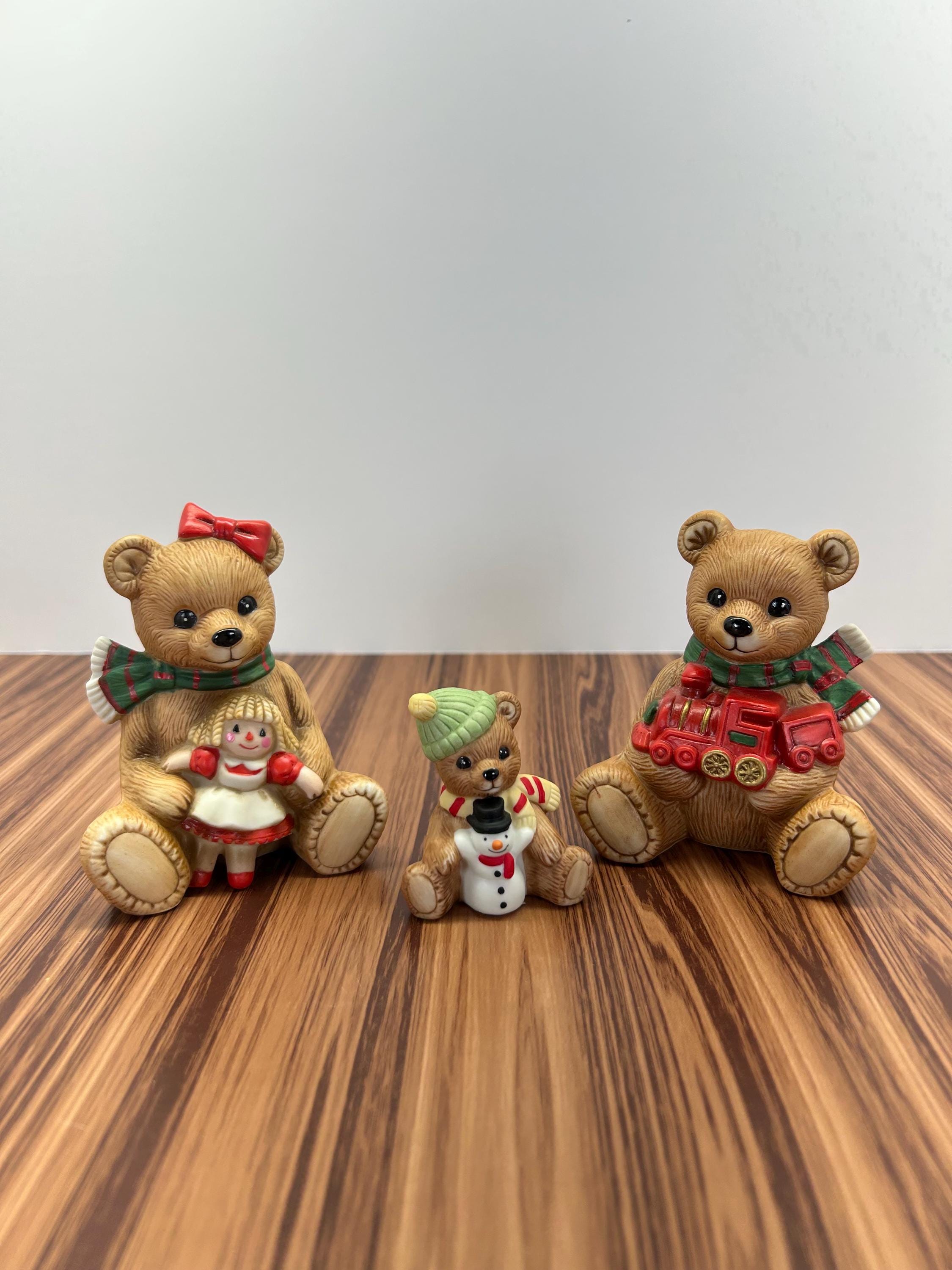 Bring a touch of nostalgic holiday charm to your seasonal décor with this sweet vintage HOMCO Christmas bear set. This set of three ceramic bears features classic Christmas details, warm neutral tones, and that unmistakable HOMCO coziness collectors love.