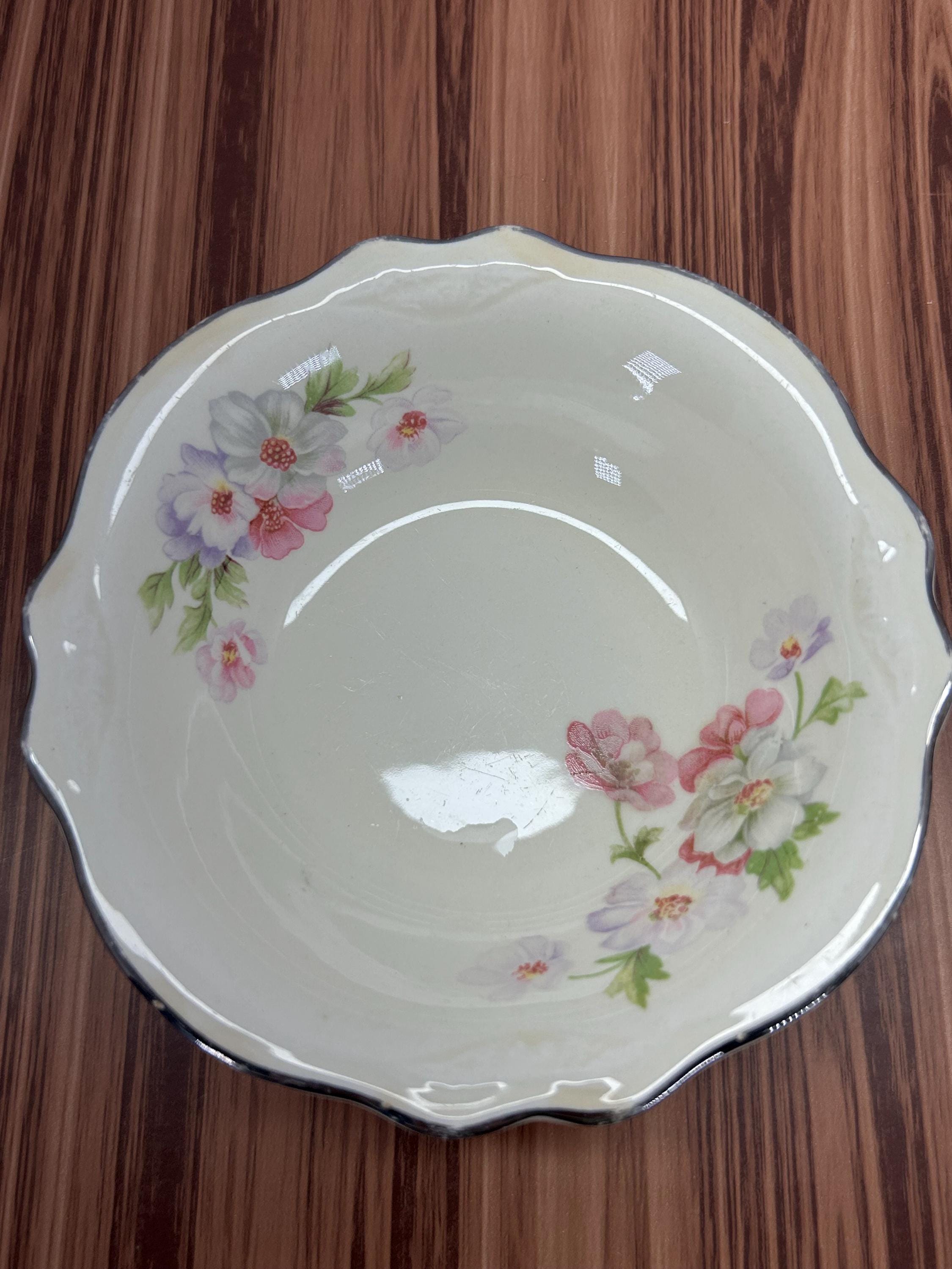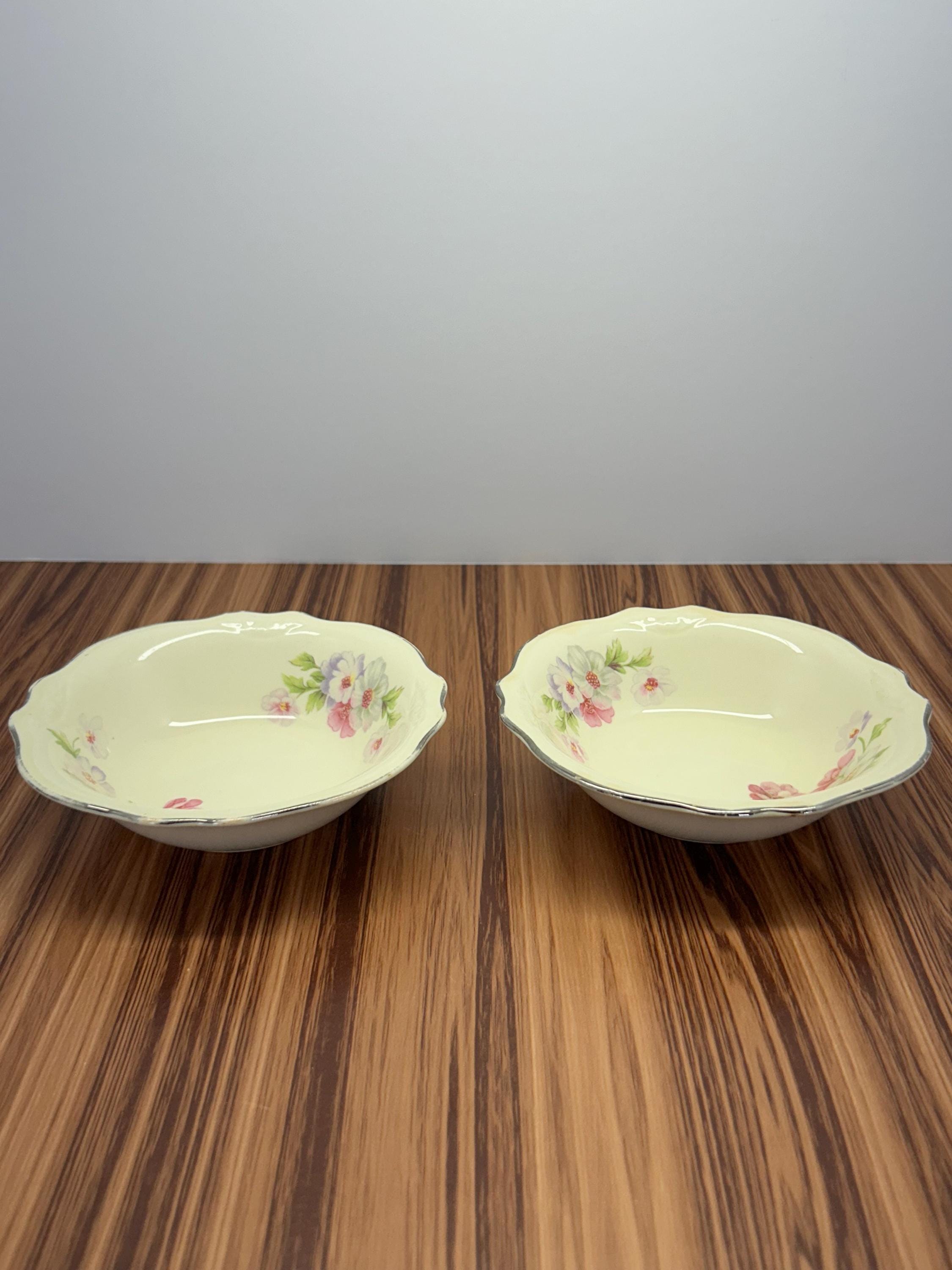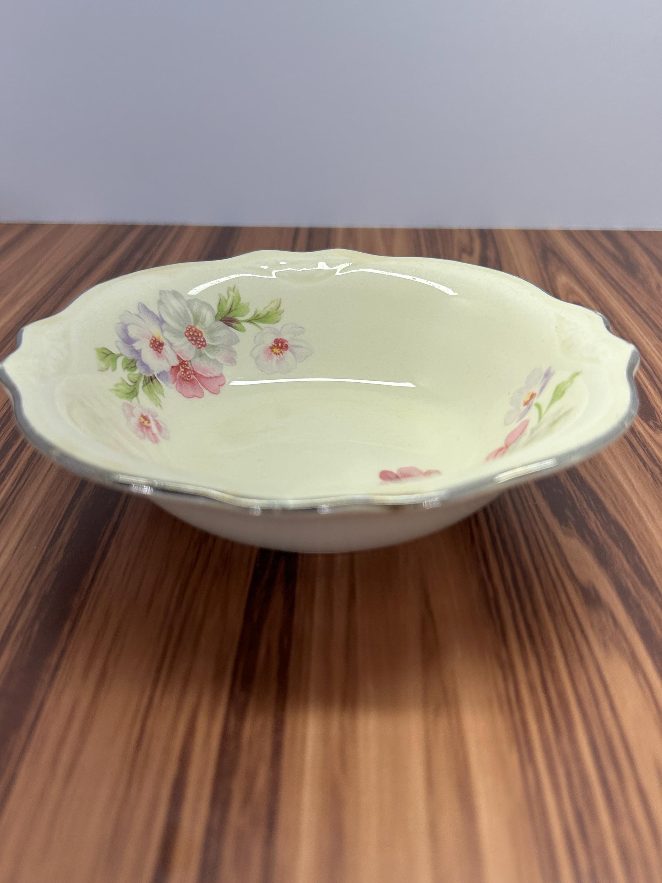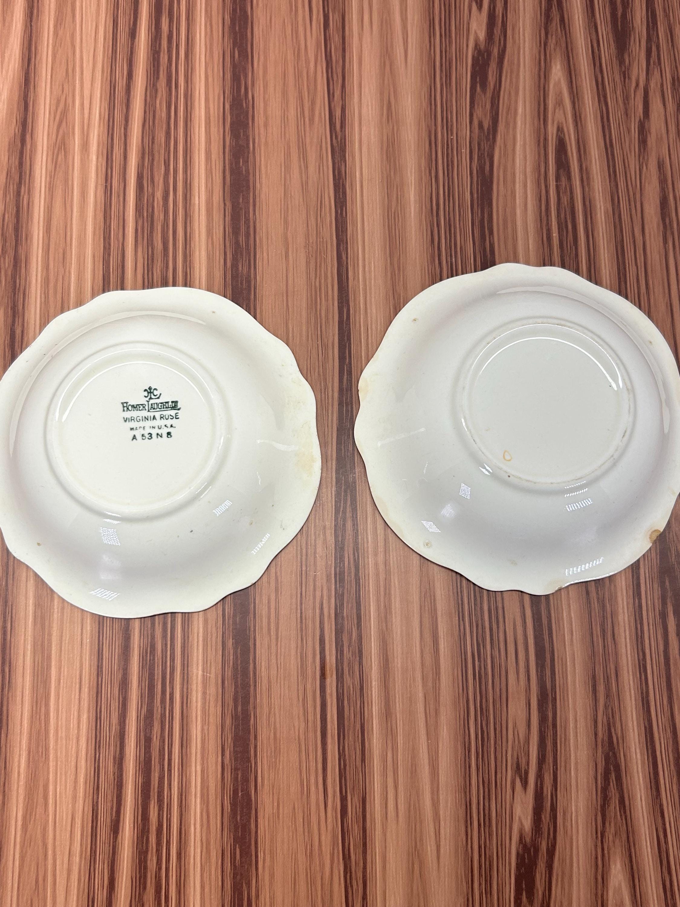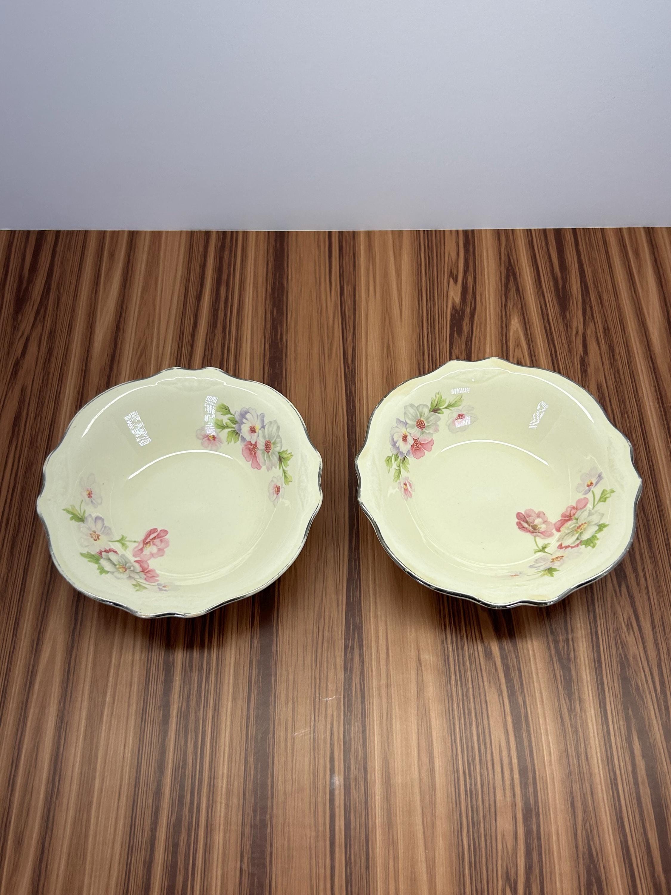 Vintage Homer Laughlin Virginia Rose bowl set of 2. Featuring the beautiful pink rose floral pattern with green leaves on an ivory background. Made in the USA. These bowls are perfect for serving, display, or adding to a vintage dinnerware collection.